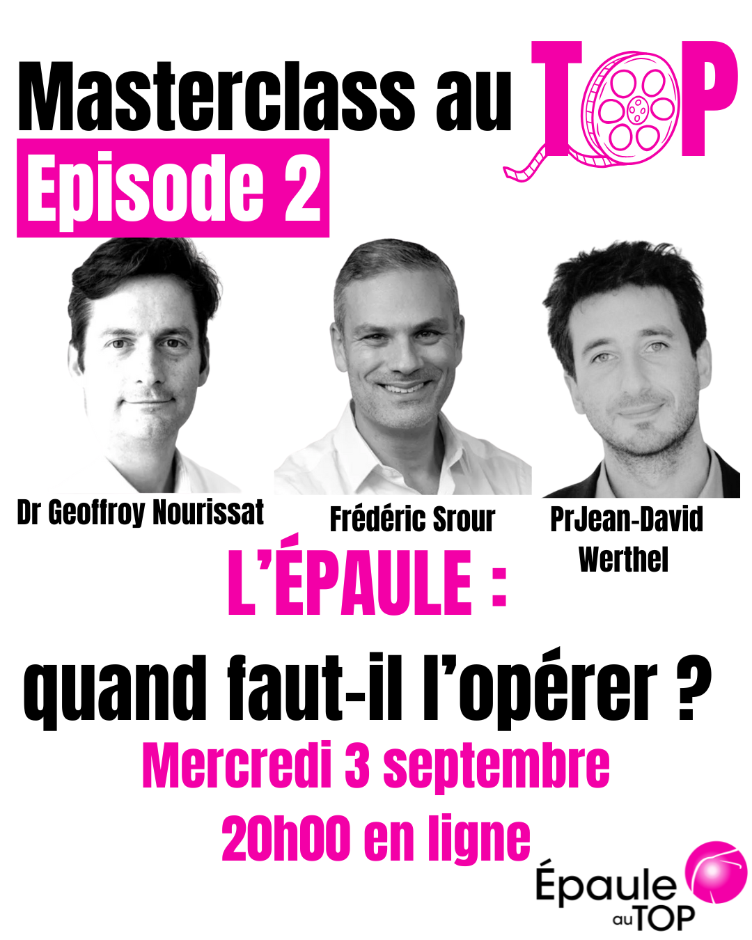 Vous pouvez participer à cet Episode 2 de la Masterclass Epaule au TOP même si vous n’avez pas assisté au 1er épisode !